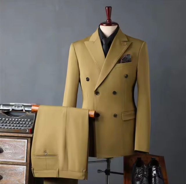 3ピース マスタード ダブルスーツ セットアップ 黄土色 成人式 衣装