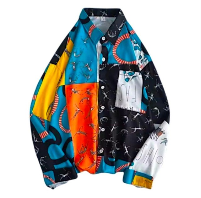 マルチカラー パッチワーク 長袖シャツ メンズ ユニセックス 【商品説明】 ブルー・オレンジ・イエロー・ブラックを大胆に組み合わせた、インパクト抜群のパッチワーク風シャツ。遊び心のあるグラフィックと鮮やかな色使いで、1枚で主役級の存在感を放ちます。ストリートファッション、フェス、イベントなどにぴったり。羽織りとしても使える万能アイテムです。 【サイズ(cm)】 M:肩幅 60 / バスト 120 / 袖丈 59 / 着丈 74 L:肩幅 62.5 / バスト 125 / 袖丈 59.2 / 着丈 75 XL:肩幅 65 / バスト 130 / 袖丈 59.4 / 着丈 76 2XL:肩幅 67.5 / バスト 135 / 袖丈 59.6 / 着丈 77 ※ご購入後にご希望サイズをお伝えください。 (多少の誤差はご了承ください) 【素材】 ポリエステル(軽量・シワになりにくい・速乾性あり) 【おすすめコーデ】 ✔ 黒スキニー+スニーカーでストリート感アップ ✔ 白Tの上に羽織ってカジュアルスタイル ✔ デニムパンツで個性的な古着MIXコーデ ✔ フェスやライブに映える派手コーデにも◎