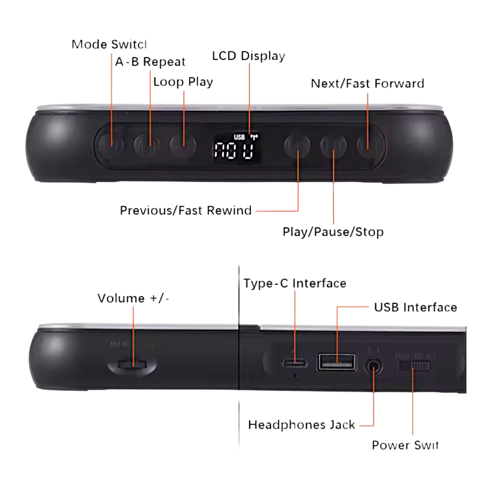 LEDディスプレイで直感操作。A-Bリピート再生機能やロックモードも搭載しているから、勉強や語学学習にも便利。
