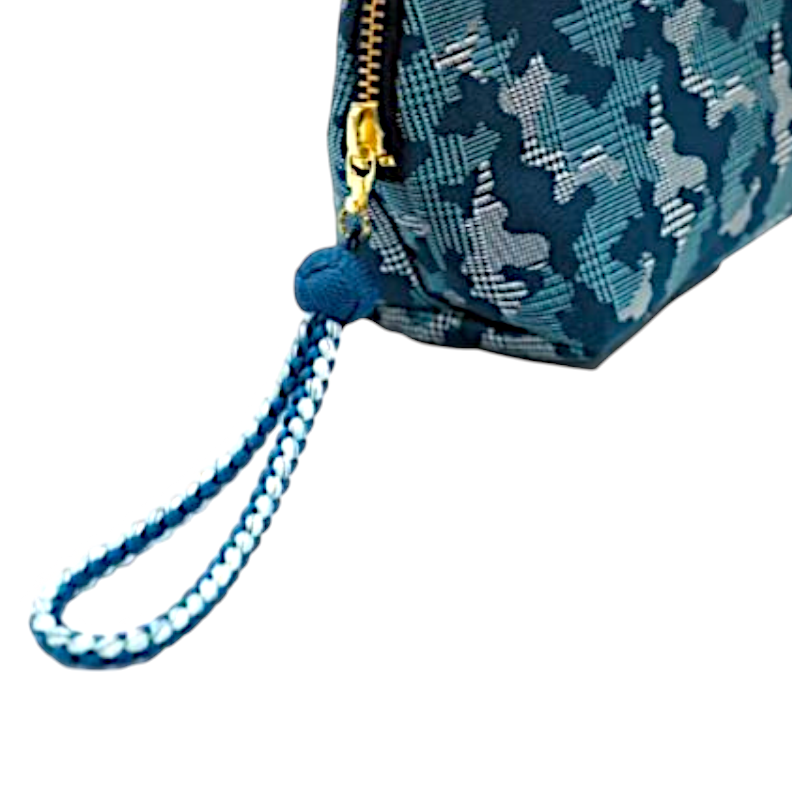 西陣織シルクポーチ|迷彩×京組紐|軽量&日本製・Atelier Kyoto Nishijin 全4色