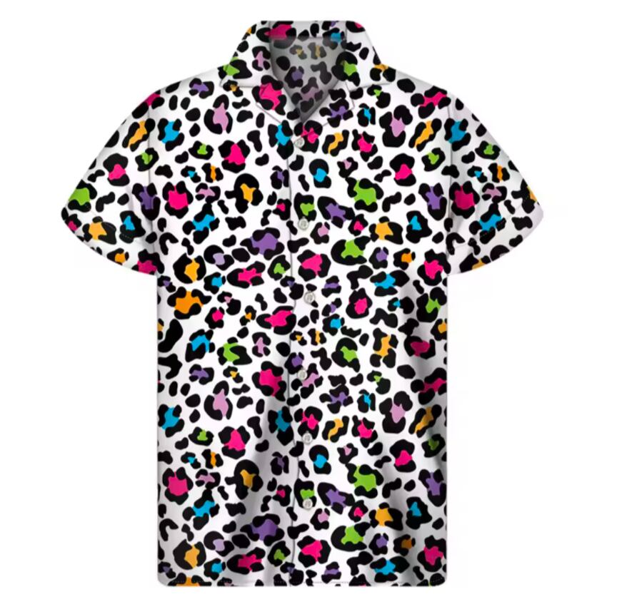 カラフルヒョウ柄 ハワイアンアロハシャツ