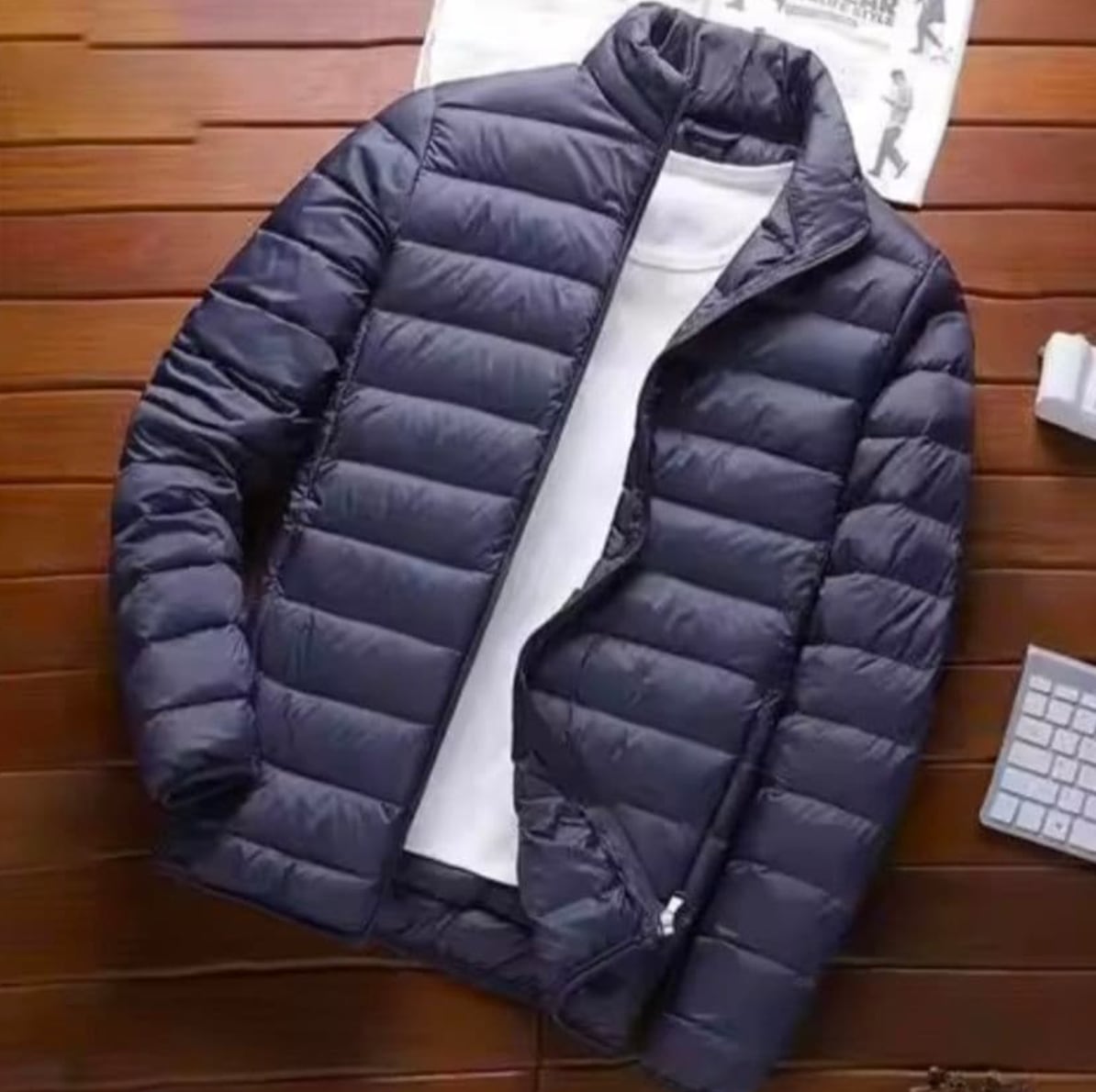 【超軽量×高保温】ネイビー軽量ダウンジャケット|スタンドカラー|薄くて暖かい万能アウター