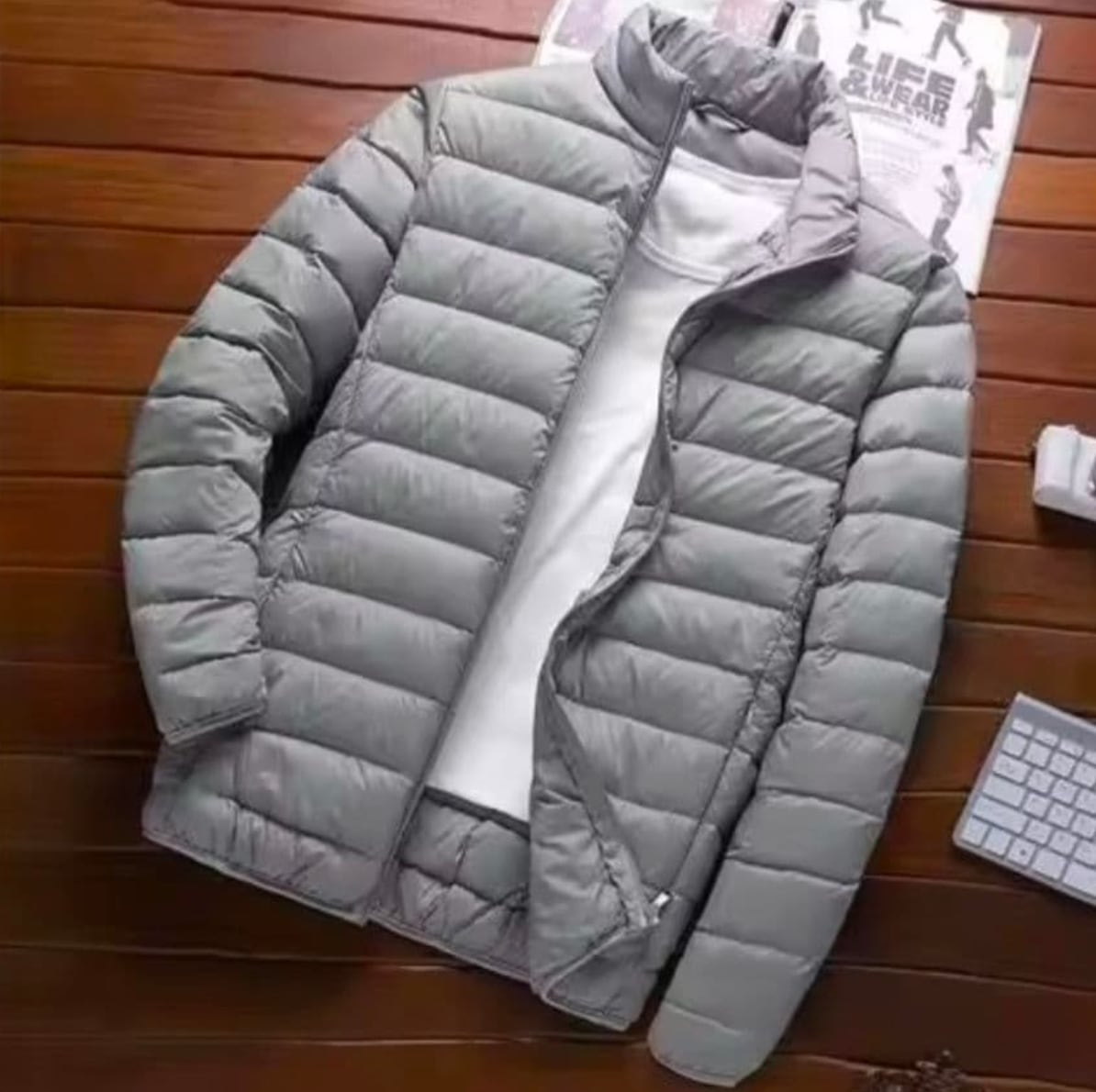 【超軽量×暖かい】ライトグレー軽量ダウンジャケット|清潔感カラー|スタンドカラー防寒アウター